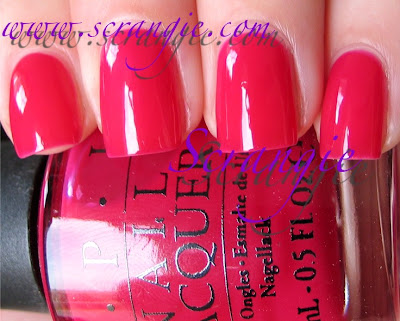 Now, OPI is really pushing this "sorbet" finish pretty hard lately. They describe it as a completely new finish. It's a semi-sheer or translucent wash of color which has the effect of looking like hard candy or popsicles... If you've been into polish for a while, this should sound familiar, because it's what we polish junkies know as a "jelly" finish. Jelly polishes have been around for a long time, but they're not very common. Despite the whole "It's not a jelly, it's a sorbet, it's brand new!" thing, OPI does this finish really well.